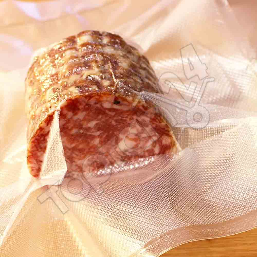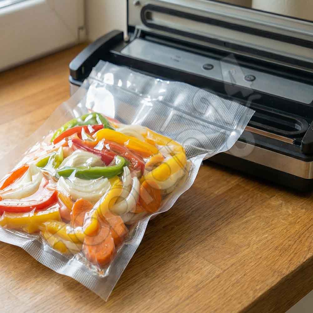Bu ürün ayrıca şu isimlerle de anılmaktadır: Kanallı vakum poşeti, ev tipi vakum torbası, 25×35 desenli vakum poşeti, tırtıklı sous-vide poşeti, emboss vakum ambalajı, gofrajlı vakum poşeti, vakum naylonu ve toptan tırtıklı vakum poşeti.