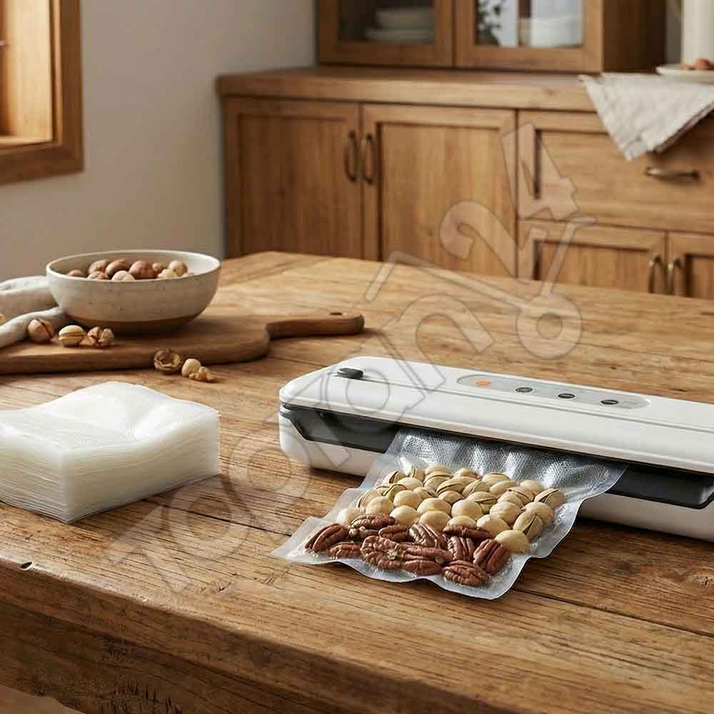 - Yapıştırma Alanı: Vakum makinesine yerleştirirken poşetin ağız kısmının kuru ve temiz olduğundan emin olun.