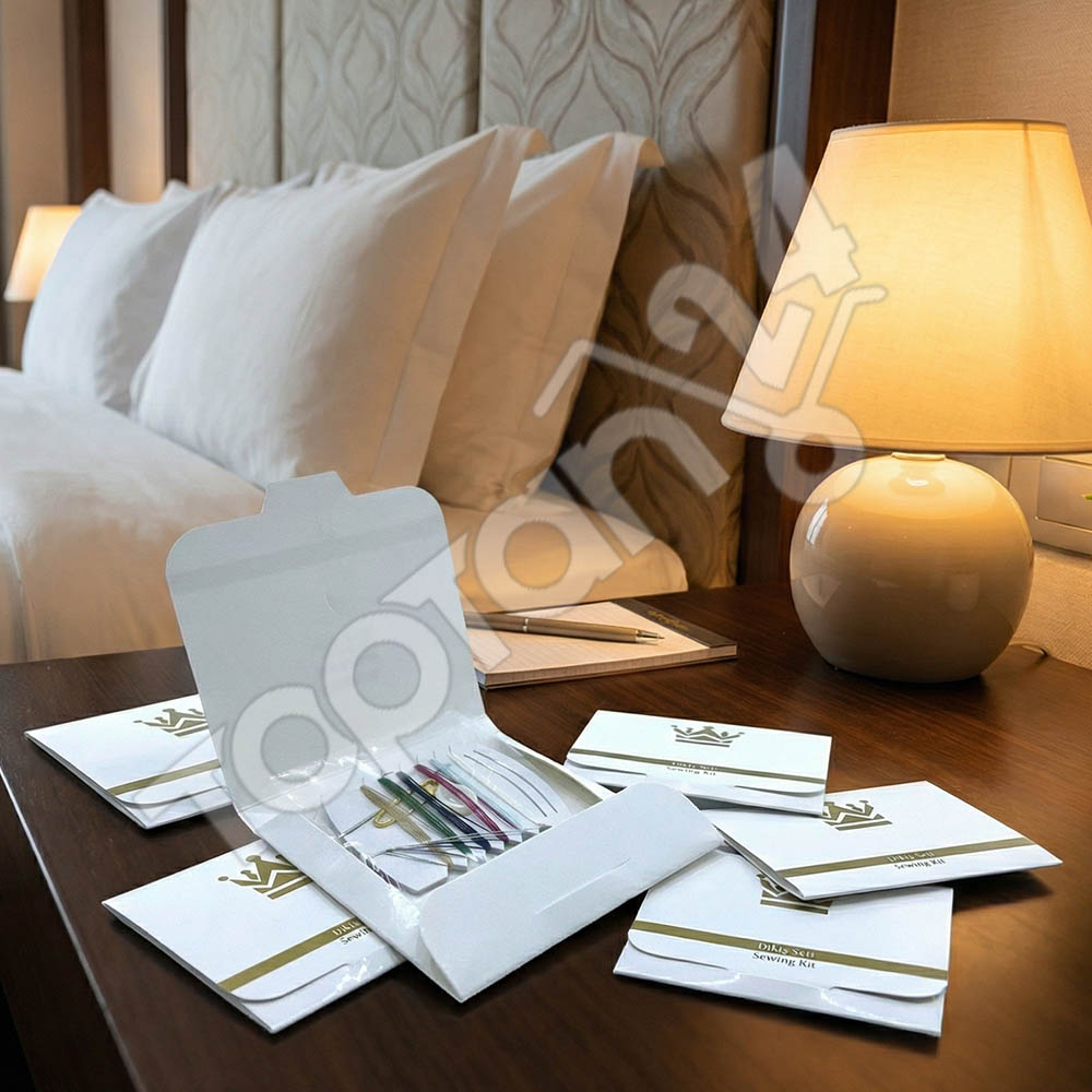 Hotel sewing kit in box, custom logo hotel sewing kit, travel sewing kit for guests, bulk hotel amenities sewing kit Turkey, promotional sewing kit box, disposable sewing kit for hotels, small sewing kit with 6 threads, hotel guest room amenities wholesale.