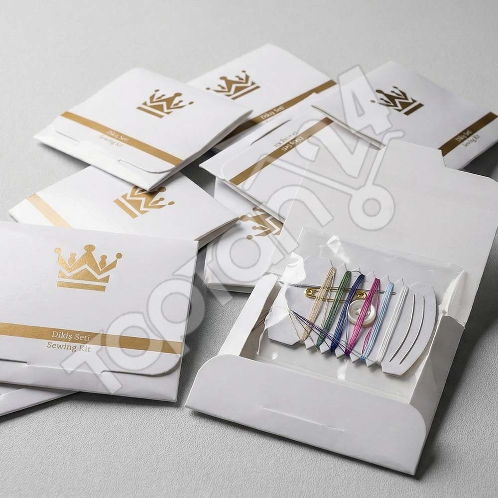 İşletmenizin marka değerini artırmak için bu dikiş setlerini logonuzla özelleştirebilirsiniz. Logonuzu vektörel formatta iletmeniz durumunda, kutu üzerine yüksek kaliteli baskı uygulanarak işletmenize özel bir buklet ürünü oluşturulur. Logolu dikiş setleri, misafirlerinize sunduğunuz hizmetin detaylara odaklandığını gösteren en zarif kanıtlardan biridir.