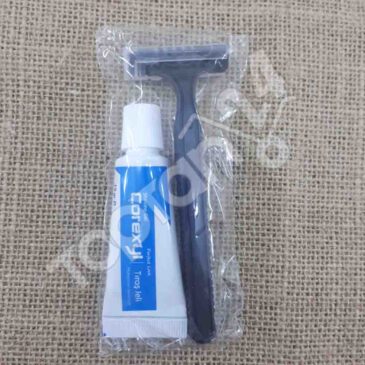 Disposable hotel shaving kit, travel shave set with pouch, double blade razor and 10g shaving gel, bulk hotel amenities shaving kit Turkey, single use shaving kit for guests, pocket size shaving set, hotel toiletries shaving kit wholesale.