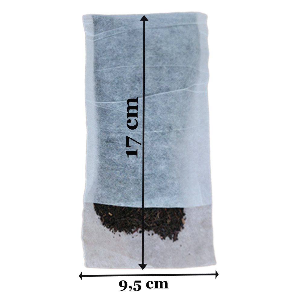 Teapot size tea brewing filter 9,5×17, paper tea bag, disposable tea filter, 20g tea filter pouch, commercial tea bag filter, hospitality industry tea filter bag and HORECA tea brewing pouch.
