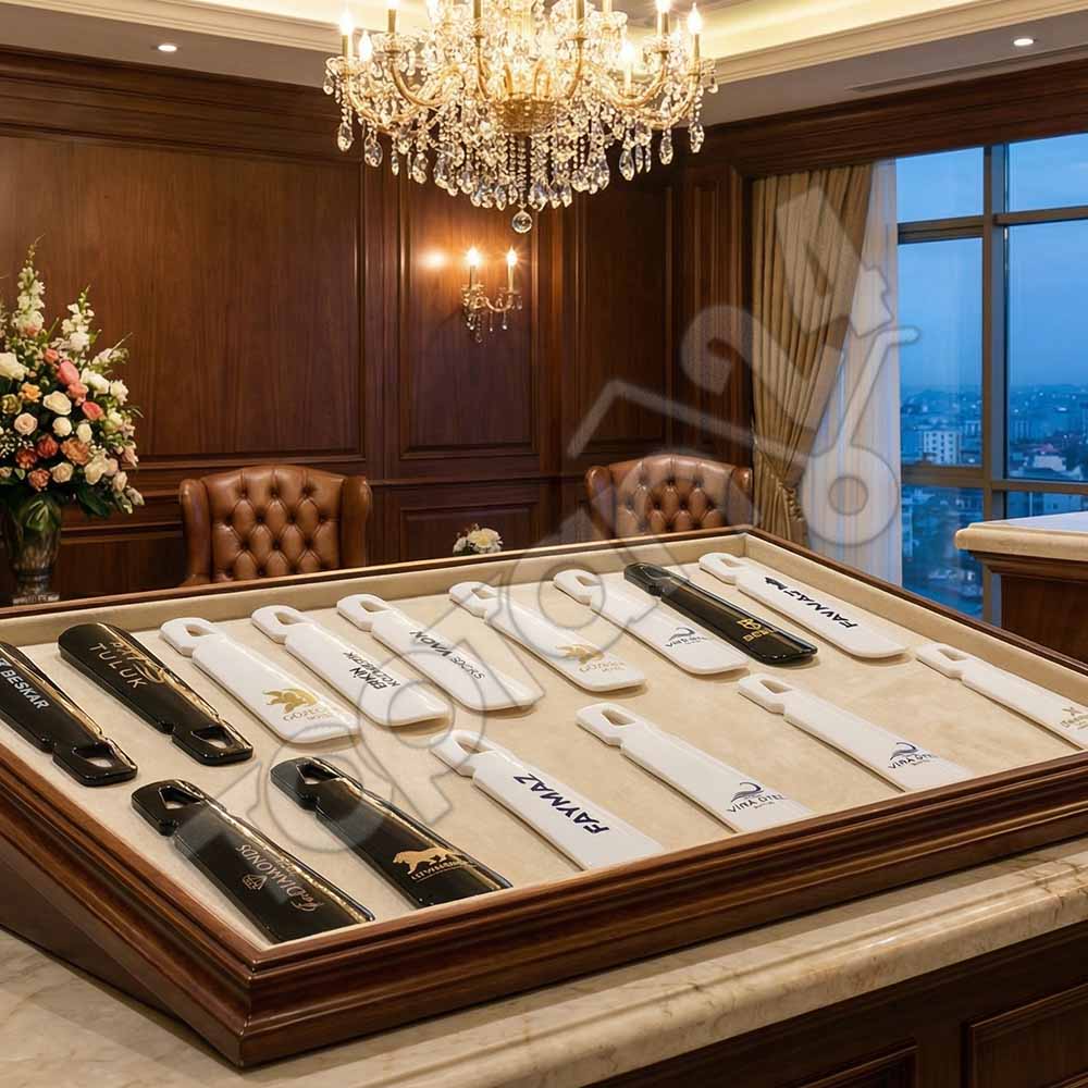 Logo Baskılı Ayakkabı Çekeceği, özellikle konaklama sektörü, ayakkabı üreticileri ve kurumsal markalar için hem işlevsel bir kullanım sunan hem de marka bilinirliğini artıran endüstriyel bir promosyon ve buklet ürünüdür. Toptan24 olarak; otellerden güzellik merkezlerine, ayakkabı mağazalarından SPA merkezlerine kadar geniş bir yelpazede, markanızın logosunu taşıyan yüksek kaliteli “kerata” modellerini işletmenize sunuyoruz. Müşterilerinizin veya misafirlerinizin günlük hayatını kolaylaştıran bu küçük ama etkili araç, işletmenizin profesyonelliğini ve misafir odaklı yaklaşımını en iyi şekilde yansıtır.