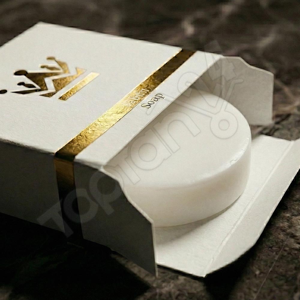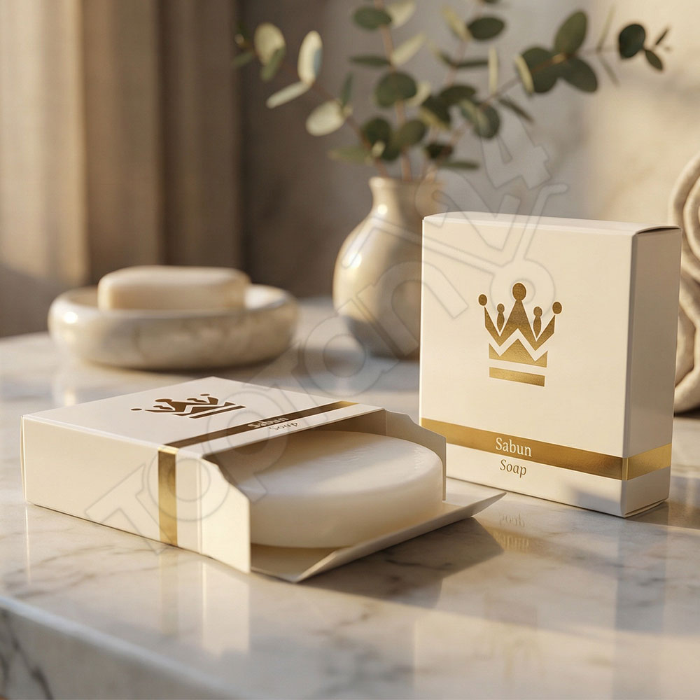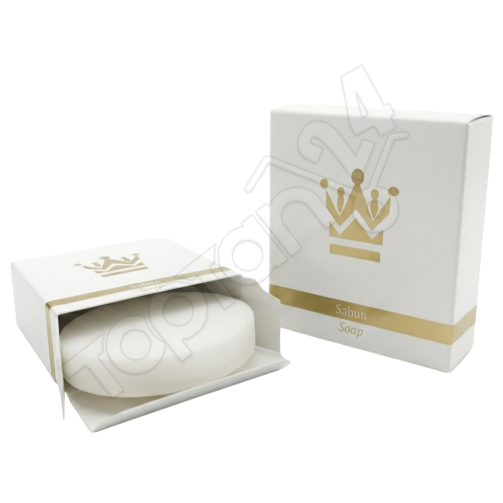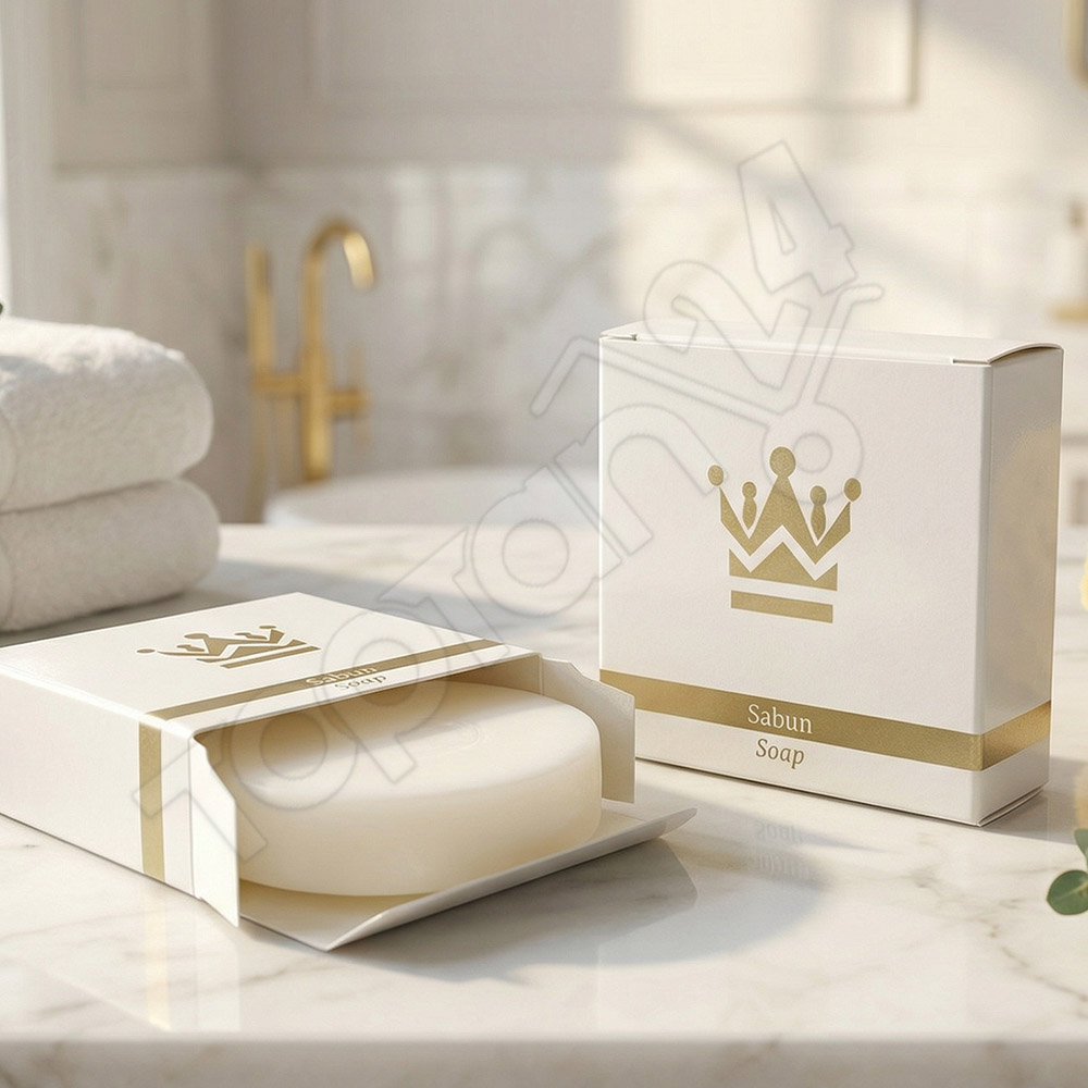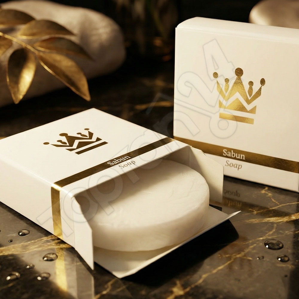 Karton kutu ambalaj, sabunun kullanım öncesinde temiz kalmasına yardımcı olur. Bu yapı misafir güvenini artırır.