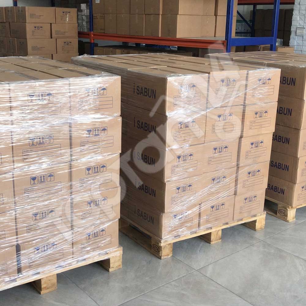 Kompakt koli tasarımı sayesinde depo alanında düzenli yerleşim yapılabilir.