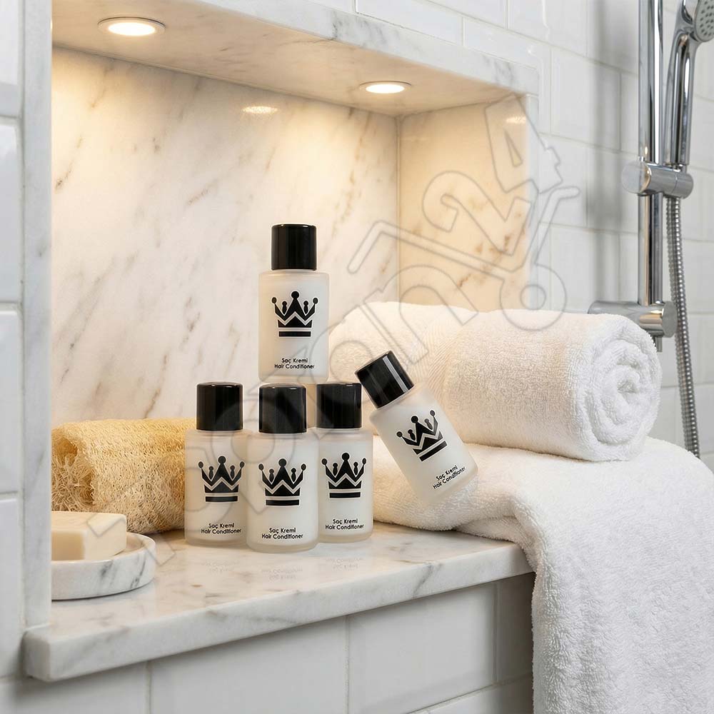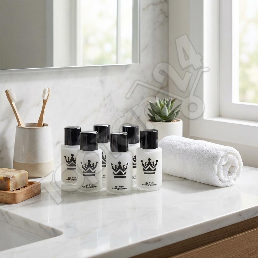 Otel saç kremi 30 ml, konaklama süresince misafirlerin kişisel bakımlarını tamamlamaları için sunulan, mini boy (travel size) kozmetik ürünüdür. Şampuandan sonra kullanılan bu krem, saç tellerini kaplayarak dış etkenlere karşı koruma sağlar. Otel literatüründe “mini saç kremi” olarak da adlandırılan bu ürün, işletmenizin banyo setindeki kalite algısını doğrudan etkileyen bir prestij ürünüdür.