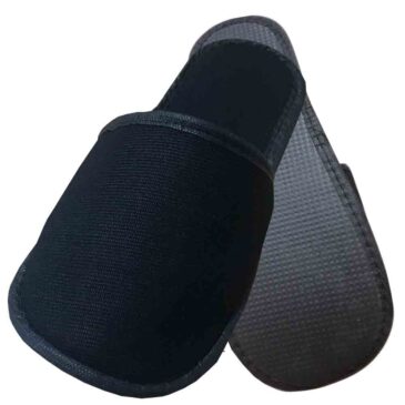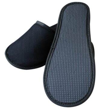 Black towel hotel slippers, disposable black slippers with binding, black velvet guest slippers, wholesale hospitality slippers black, single use black slippers with 5mm sole, anti-allergic black hotel slippers, black spa slippers wholesale, professional hotel amenities black footwear.