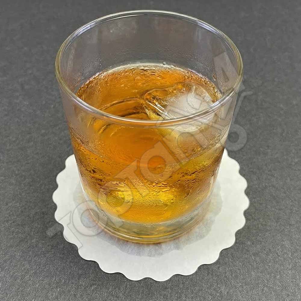 Disposable paper coaster, laminated paper coasters, personalized beverage coasters, bulk paper doilies, hotel supply coasters, white embossed paper coasters, Dole paper coaster.